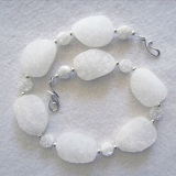 Sparkling Winter White Druzy Crystal Quartz Necklace is a beautiful example of natural Druzy Quartz that looks like translucent puffy clouds. The perfect touch to any color outfit – or to a white wedding gown! All the quartz beads are polished on the sides and back, so they lie smoothly and comfortably on the skin and will not scratch clothing. Each of the seven freeform crystal quartz are natural. The smaller round druzy crystal quartz in this necklace are coated with a thin layer of Titanium, to produce a contrasting iridescent permanent coating that provides even more depth and interest to this stunning necklace. The Titanium coat is done in a vacuum chamber coating only the crystals on the top of the quartz.