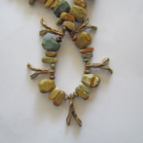 - Small accent and spacer beads are various jaspers, agates, and metal that complement the major beading.