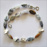 - The necklaces are composed of natural White & Black Dendritic Agates in oval and marquise pillow shaped stones, measuring 0.5 to one inch.
