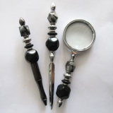 Buy a matching Pen, Letter Opener, or Magnifying Glass - all are available separately, or as a mix-and-match set. Each beaded piece is available on this webpage. The Pen is $85. The Silver or Gold-Plated Letter Opener and Magnifying Glass $95 each and the Silver-Plated Vanity Mirror, are $125 each. (The Silver-Plated Vanity Mirror is not sold as part of the set.) For individual products, complementing and accent beads may be modified from the photo in order to provide you with a unique product. For multiple-product designed sets, all pieces will be perfectly matched. If your Vanity Mirror is part of a Silver-Plated Set, please let us know in the drop-down menu.