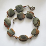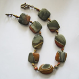 - Polychrome Desert Jasper Necklace in Exotic Greens and Terra-Cotta Reds (EAR-026)