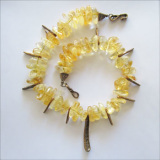 Sparkling Sunshine describes this gorgeous Citrine and Bronze Necklace, which reminds Miriam of the warm golden yellow tones of Autumn. Citrine is a naturally transparent to translucent quartz, ranging in color from pale to deep or golden yellow, to amber and brown. The name “Citrine” is derived from the yellow lemon or citron-like color. The International Gemstone Color Association describes this beautiful stone to be “Like golden Rhine wine or sparkling Madeira, heavy and sweet, citrine jewelry shimmers and brings a hint of sunshine to those dull November days.” While the deeper toned Citrines are often called gold topaz, or Madeira or Spanish topaz, except for the nuances of color, Citrine has very little in common with genuine Topaz - which is not quartz, but a higher-quality (and more expensive )clear gemstone. Most Citrines are heat-treated to bring out the natural color, and are still considered "natural." They are not color-enhanced.