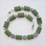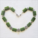 Green Jade Necklace with Uniquely Carved Sterling Silver Sunflowers (GRN-006)