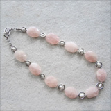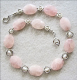 Each Rose Quartz stone in this pretty and delicate necklace is cut like a rose petal and ranges from clear to translucent. The color is a lovely very light pink to soft rose. Miriam designed and handcrafted this necklace using Sterling Silverrings and white Freshwater Pearls. You will love the way shiny silver rings reflect the rosy pink stone color onto the pearls, creating an iridescent glow.