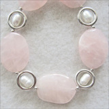 - Pretty Rose Quartz Petal Necklace with Pearls and Sterling Silver (PINK-001)